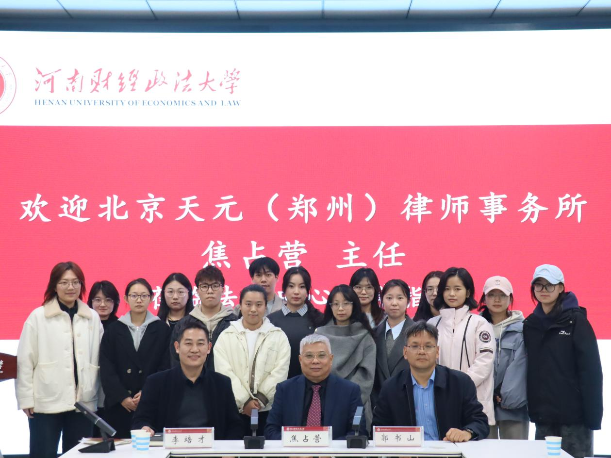 2025年10月27日下午,北京天元(郑州)律师事务所主任焦占营应邀莅临我校,在法学楼314会议室为法律硕士研究生作题为“法律职业的选择与拓展”的专题讲座。本次讲座由法律硕士教育中心主办,旨在帮助学生明晰职业发展方向,提升专业素养与就业竞争力。法律硕士教育中心主任郭书山、副主任李培才、培养办公室主任柳欣欣与百余名师生代表共同参与。讲座由李培才副主任主持。